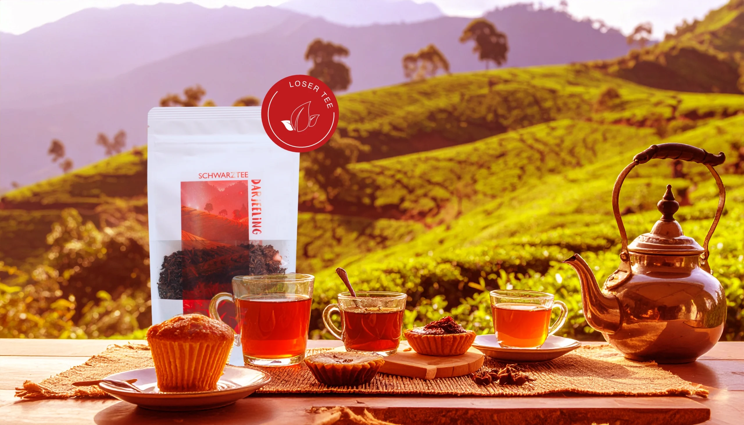Entdecken Sie den Zauber der Teeblätter! Unser Schwarztee Darjeeling… …so frisch wie der Nebel über den Teefeldern selbst. Keine Aromen, nur pure Natur. Lassen Sie mit jeden Schluck die Melodie des Lebens erklingen und genießen Sie den Moment!