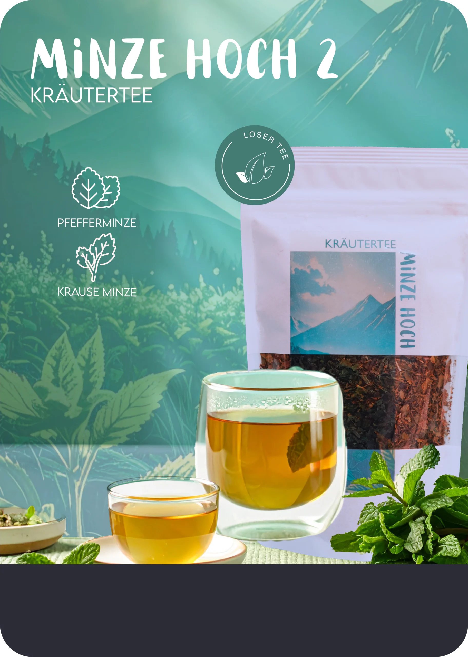 Erleben Sie die Frische eines grünen Gartens mit unserem Minztee, der aus reinen Pfefferminz und -Krauseminzblättern gewonnen wird. Gönnen Sie sich eine Auszeit voller Frische und Natürlichkeit! Ohne künstliche Aromen, nur Natur pur – ein belebender Moment.