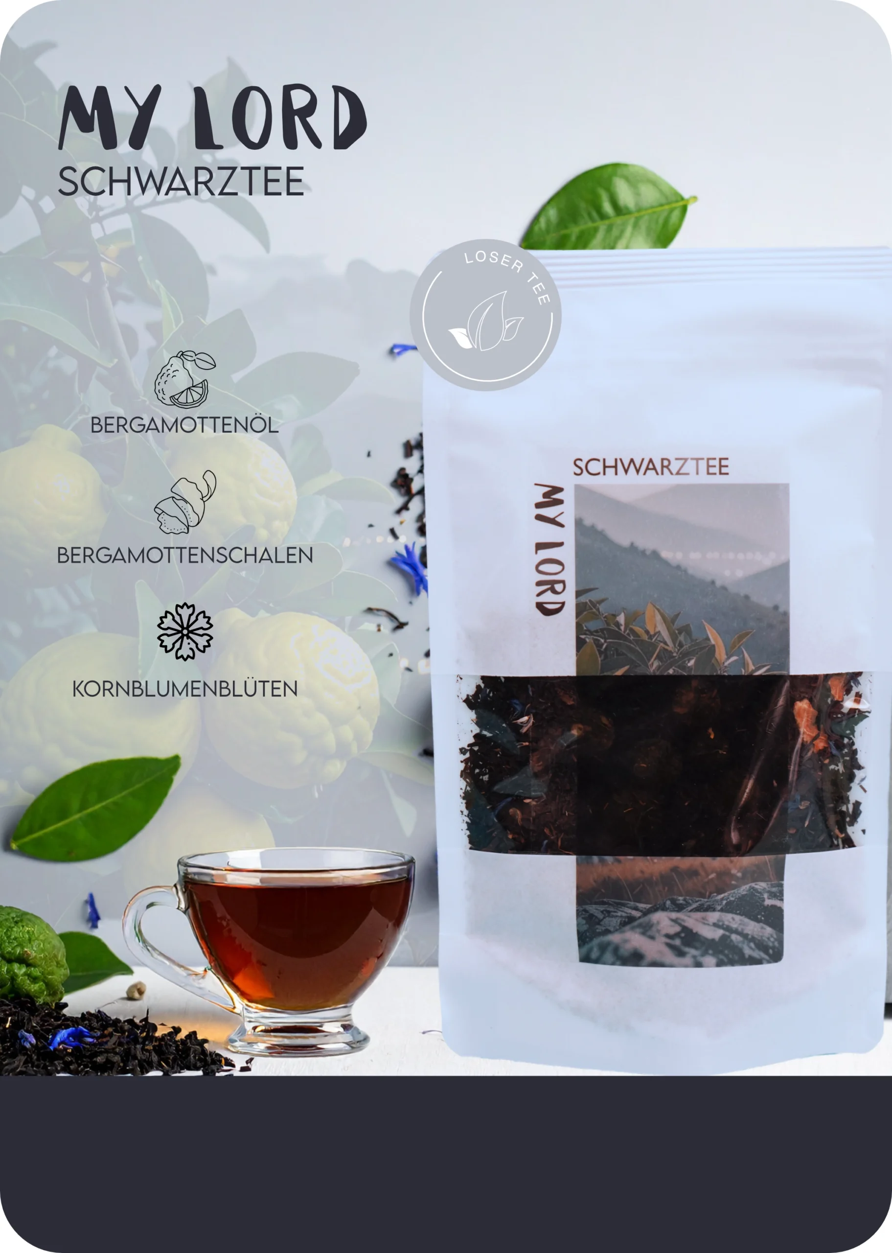 Tauchen Sie ein in die duftende Umarmung unseres Earl Grey Tees mit einer wundervollen Note von Bergamotte! Rein wie der Morgentau in den Bergen entfaltet er seinen zarten Charakter ohne künstliche Aromen. Lassen Sie sich entführen – jeder Schluck ist ein Sonnenstrahl auf Ihrer Zunge!